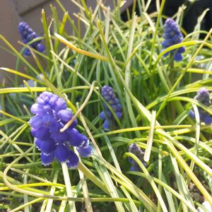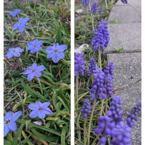 ⬅️花ニラロード ➡️ムスカリロード タイル横に植えていたら自然に 1列になって生えてます😁 可愛いから許しましょう😍