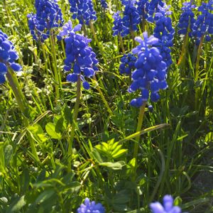 クリスマスローズの花壇に咲いているムスカリ😊 最初は何でクリスマスローズの花壇に?と思っていたけど、育ち方などが似ていてオススメされていて父も植えていたんですね☺️ 青いクリスマスローズがない中に、ムスカリの青の映える所がまた素敵😊