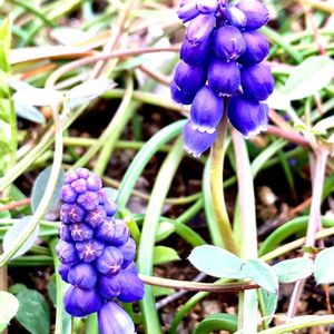 ムスカリ、チンアナゴ、 カンパニュラオーシャン、 謎の卒業花🌸 19日に記念に頂いて部屋に飾ってたけど、葉っぱがふにゃんとしてきたので、とりあえず植えてみました。 何の花だろ。