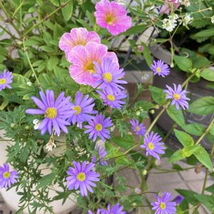 ブラキカムと ミリオンベル アンティークピーチ🍑 どちらも、冬越しさせました😊 去年も同じ組み合わせで植えてたかも… ブラキカムは春先、チョロチョロだったから、こんなに咲くとは 嬉しい限り。 寄せ植え内のユーフォルビア ダイヤモンドフロストが勢力拡大で、 負け気味ですが😅 暑い日はまだ続くようで、心配ですね。はやく和らいで欲しいです…