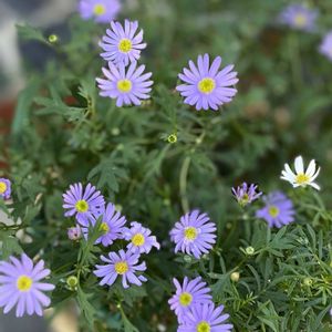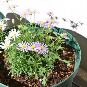 朝からとても良いお天気☀️です 我が家の💚ブラキカム💜 一度ダメになりかけて… 植え替えて、陽当たりの良い場所に… 復活しました✨✨ 星空マム💜🤍 白との2色植えだったんですが😅白は消えたようです