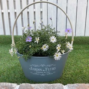 🌸お花便り 【#すぐ楽星空マム 】 🗓️定植2025-10/21 → 2025-12/10 (7w1d) 🗾愛知・耐寒性ゾーン8b 🧭南西 ☀️4時間 🪴28cmかな? 🚿週2 🧴週1 📌④⑤🌱6号のグロウコンテでスタートしたのですがスクスク育ってくれなんだか苦しそうに見えたので😖12/10にバスケットプランターに鉢増ししてみました🪴撮影を忘れたけれど🙈しっかりとした根がびっしりで先に向かって心強いです🐒🎶 📌③なんでもカゴ車🚲に乗せたら可愛く撮影出来ると思っていたけれどなんか違う気がする🙄どうかしら?