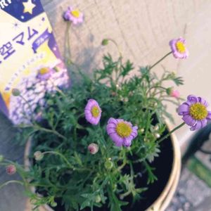 先日、サントリーさんの『星空マム』をお迎えしました✨ 青いお花が小さくてカワイイ❣️白もお迎えしちゃおうかなぁ🌼🌼 夕方から夜になると、花びらがクルンっと丸くなるのですが、こういう花なのでしょうか?(笑) 朝になると開いています🌼🌼 こんもり育ってくれると嬉しいな😊❣️