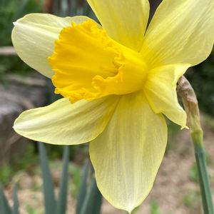 花壇のラッパスイセンです。 普通のスイセンに比べて副管冠が長いです。