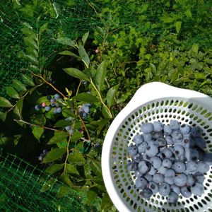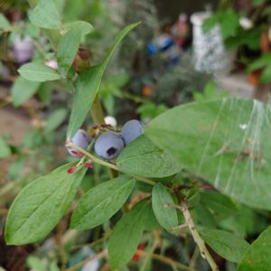 ブルーベリー 収穫(^^) 数は少ないが、それなりに甘かった^_^ もう一本は網があまかった!悔しかったがヒヨドリ?に全部あげました>.<(+_+)(*_*)O_o 一粒くらい味見したかった!