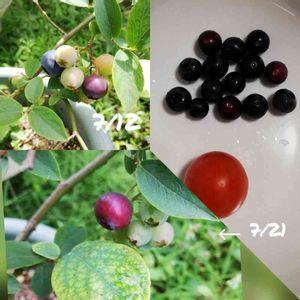 雨続きの時は、なかなか色付かず、食べても甘みが少なかったブルーベリー。 ちょっとずつおひさまがでてきたら、毎日5粒位食べごろに😄 ぷっくり甘みも増しています☺ 父が苗作りしてくれた中玉トマト🍅は、1日1個!でも美味しい☺