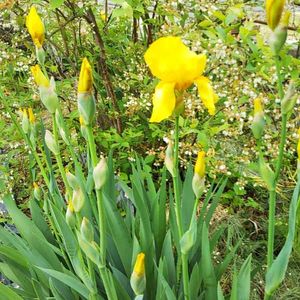 *ジャーマンアイリス* 今朝の畑、ジャーマンアイリスが、咲き初めました。 綺麗な 黄色です。💛
