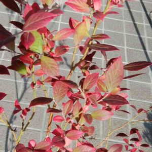 ブルーベリーが紅葉 見切り品購入してはやくも半年未だにポットのまま お相手も未だに見つからず