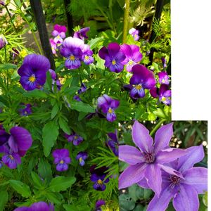 🌼クレマチス ミゼットブルー🌼 先日、クレマチスのミゼットブルーさんをお迎えしました😆🎶 コンパクトタイプで小さな鉢で大丈夫そう😄 八重咲きカリブラコアと寄せてみました💜💛