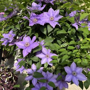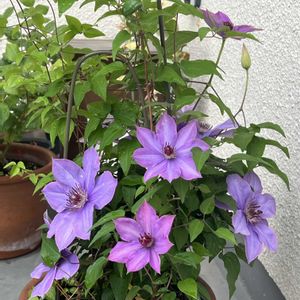 【クレマチス】《キンポウゲ科》 花言葉 「精神の美」「旅人の喜び」「策略」 「水面の妖精」(弱剪定) 花言葉「甘い束縛」 2/15に届いてから 1メートル程に成長し 蕾も沢山付いており 漸く1番花が咲き始めました 「ミゼットブルー」 花言葉「心の美しさ」「精神の美」 母の日プレゼント🎁で3年目 今年も咲いてくれました