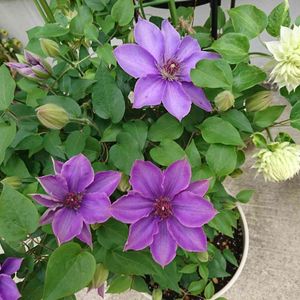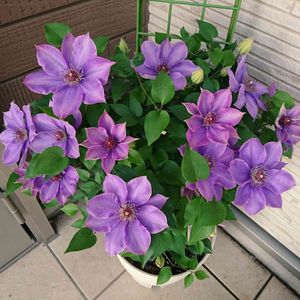 私の初めて買ったクレマチス ミゼットブルー✨ クレマチスって、高い❗️って思っていた時、花付きで1000円くらいで売っていて、衝動買いしちゃったもの。 育て方もわからなかった私でも、もう十数年のお付き合い。 今年は蕾が少ないなあ。 今から肥料あげたら、まだ咲くかな❓