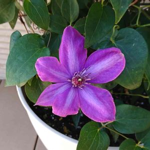 こんにちは😃 今年、お迎えしたクレマチス「ミゼットブルー」の2番花が咲きました💜 シベの中心が可愛い😍