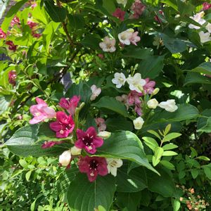 本日3回目の投稿です😝 ちょっと犬と散歩にでるとたくさんの花たちに出会います🎵 近所のお庭のハコネウツギです🌸🌸 白から赤に色が変わるそうです😊