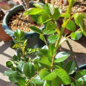 バラも始動が早いものと遅いものがありますね。 この冬に購入したアルテミスは、こんなに葉が展開しちゃってます!強健なつるバラで、柔らかな白が特徴です。しばらく鉢で大きくしようかな。