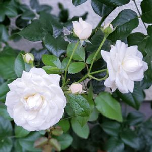 雨でも嵐でも変わらずにそこで咲いている、そんなバラです。白壁の前じゃ主張できないし…(汗) 茎は太くて程々にしなやか、泥の跳ね返りをものともせずお肌ツヤツヤ🌟 「僕がいなくても君はやっていけるだろ」と言われて振られそう😥!? お世話のし甲斐があるバラとは違うかも知れないけれど、すごく信頼できる『アルテミス』です。