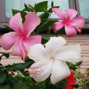 こんにちは👋😃 今日は、雲ってて暑さは、ましですね。 うちのハイビちゃん達なにやらお話してます🌺