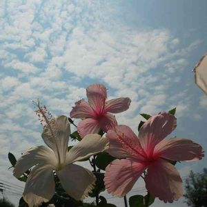 おはようございます☀️😃💦 今日も暑いですが……😃💦🌺 沖縄は、台風🍃🌀☔️大丈夫でしょうか⁉️ 今日のハイビスカスヘップバーンホワイトちゃん&ピンクバタフライちゃんです😆🎵🎵 お二人で何見てるのかな💗☆ 今日も元気で頑張りましょう💪