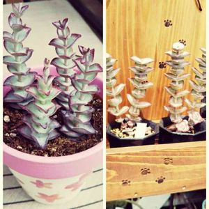 星の王子様達、花芽を✂️し丈も半分位に切りつめました❣️ 鉢に4本取り敢えず挿しました。 早く根が出てくれるといいんだけれどね😁