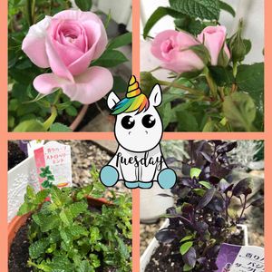 おはようございます😃 新しい時代 令和 始まりました! 令和の時代は、穏やかな時代になりますように祈ります(*^^*) これからもよろしくお願います。 お花は、 ミニバラ・ピンクジュエルさんと、 香りハーブ 左 ストロベリーミント🍓 右 バジル ダークレディ です。