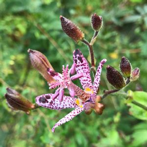 ❥♥︎ ホトトギス ♥︎❥ 🧚♀️畑の片隅に毎年咲くホトトギス、今年も一輪目が咲きました✨🎶💕 いつも思うけど、不思議な花🙄