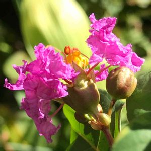 ❥♥︎ サルスベリ ♥︎❥ 種が飛んできて、生えてきたサルスベリ、木はまだ小さいですが、花が咲きました。 実際に見ると、薄紫色なのですが、日に透かして写真に撮るとピンクに写ってます😅