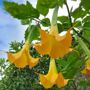 ❥♥︎ エンジェルス トランペット ♥︎❥ 🧚♀️💛大きな花です✨💕 毎年咲きます🎶 夏の暑さ、冬の寒さにも耐え、頑張ってます🤩