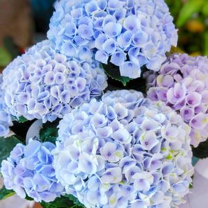 マジカルレボリューション 何年もグリーン×ピンクだった紫陽花。 可愛い水色になりました。 1カ月以上、この状態。 強くて花持ちが良い優良品種だと思います。 コンパクトでかっちりした姿です。