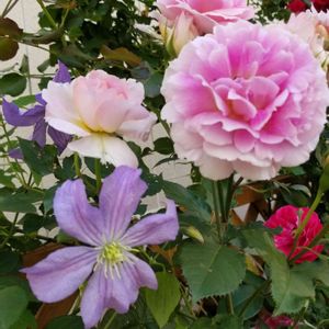 クレマチス プリンスチャールズが咲き始めました😍バラ ペネロペイアと一緒に撮りました🤗💕