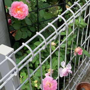 おはようございます💕 母の日の朝は少し肌寒い曇り空。 可愛い可愛い子供たちに会えないママ達の思いのようですね。 それでもガーデンは春💕 weima garden自慢の娘をご紹介します。 駐車場のフェンスを彩るこの子はペネロペイア。 もっと濃いピンクだったはずですが、今年の春はこんなに優しいふわっとしたピンクで咲きました。
