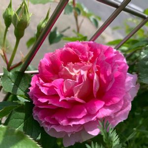 新しくお迎えしたバラ ペネロペイア🌹 明るいピンクを想像してたのですが、結構濃いピンクですね。でもいい香りがして可愛いです🎵💕