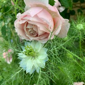 昨日のニゲラさんと、ローブ様 よく降るわね〜☔•*¨*•.¸¸♪♫♬ とでもお話してるのかな?