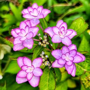 ダンスパーティー💜とおたふく紫陽花🩵💙 フルリノベーション時に消えた紫陽花の中隅に植えてあった生き残り紫陽花💙🩵💜ダンスパーティー 真花が咲き出しました🌼しっかり蕊も確認出来るようになりちっちゃな花が顔を出した💞 30年の余前に頂いたおたふく紫陽花🩵 装飾花が有りません。時に昨年は幾つか装飾花が見られましたが… 今ポップコーンなんて可愛い名前の紫陽花もおたふく紫陽花からかしら🤔