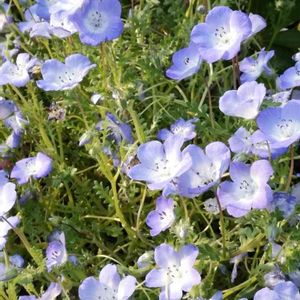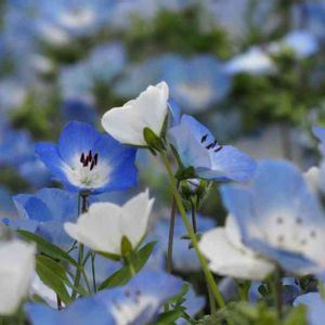 [今日のお花] 北鎌倉 ネモフィラ、ムラサキ科ネモフィラ属の一年草、和名 瑠璃唐草(るりからくさ) 🌼花言葉 「可憐」「どこでも成功」 🌼別名の「瑠璃唐草」はオオイヌノフグリの別名と同じで混同されがち