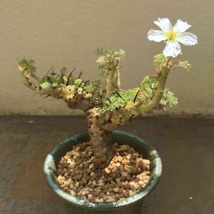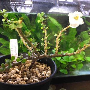 フウロソウ科 サルコカウロン属 ヘレー(竜骨城)塊根植物😸🐱 今朝、咲いてました。🎊😋 白っぽい?薄黄色系?の可愛らしい花でした。(笑)😁 蕾が沢山出てきてるので、これから楽しめますね。😊