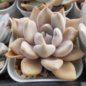 今日は朝から☔で「出勤前の春作業」ができず。春衣装では肌寒かったんで冬衣装の1日でした💦 写真も撮れずだったので昨日撮りの子たち。 ↖️モンロー 2017年12月にお迎えして5年目の子。 昨冬の大寒波でやらかして春に仕立て直してからの完全復活👍モンローはラウリンゼと交配式が同じなんですけど、ラウリンゼみたいに大きくならないタイプがモンローなんだそうです。 ↗️ブルーサプライズ この子も2017年12月にお迎えして5年目です。 葉数がしっかり増えてくると水を控えなくてもまん丸で可愛いフォルムになります💕 ⬅️真珠姫 2018年6月にお迎えして4年目。 名前が良いでしょう🎵あまり見かけない子なんで保険株を作りたいんですけど、なかなか葉数が増えず、困ってます🤣 ➡️ブルーバード この子も2017年12月にお迎えして5年目。 積極的に直射にたっぷり当てるとウォーターマークがくっきり出る子で安定の可愛さ🤩どうしても茎立ちしてめちゃくちゃ邪魔になるんで「この春は仕立て直そう!」と思っていたんですけど「待てよ待てよ、キリがないからこのまま枝垂れさせてみよう🎶」と場所もないのに新たな決意(笑)皆さん、ブルーバードどうされてます?😂 ➡️ピンクシャンペーン 2018年8月にお迎えして4年目。 大きくなり過ぎるんで、昨秋に素焼き鉢4号からプレステラ105にサイズダウンさせたんですけど、勢い抑えられず💦下葉をもぎもぎするか悩み中です…🤔 ロメオとラウィがご両親。 ↙️シャイニングパール 2018年3月にお迎えしたんで5年目に突入。 昨冬の大寒波でやらかして春に仕立て直してから絶好調👍名前の通り「キラキラ✨」の葉質が綺麗なんですけど、これからの急激に強くなる春の日射しでカンタンに葉焼けするんで要注意な子です😅 ↘️オパリナ 2017年7月にお迎えして5年目。 当時は安定せず、めちゃくちゃ手こずった子なんですけど、今ではすこぶる丈夫な別嬪さん。グラプトの中では耐寒が少し弱めなんで、今冬は「小寒頃から夜だけ室内」に入れて冬越して、昨日の春分をもって冬越し完了。無傷で粉吹きも良く、ええ感じで冬越しできました🤭 夏型の子以外は、冬越しが終わったんで「しっかり育てて、存分に愛でる!」そんな春にしたいです😆🌱 「たっちんの○○○」タグをタップでこの子たちの生長記録のみどりのまとめが簡単に見れます😊🎵 。* ❤︎… 今日のひと言 …❤︎*。 そろそろ春秋型の子の春作業も終盤。残る夏型の子の春作業が始まるまでの間に、しっかり水やり&施肥、そして何より存分に愛でましょう🤩