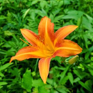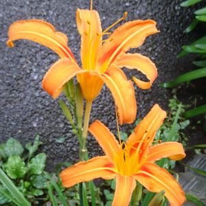 雨、あがりましたね、🎶🎶横浜関内に出かけます、シャンソン仲間と、ランチです🎶🎶今日のお花カンゾウ🧡Al占いで百合、とでましたので、雨の前に咲いたゆりを🎀