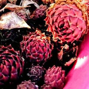 鉢(缶)上げしたセンペルちゃん🌸🐝 外の棚でいい色になってるー(^^)d💜💚
