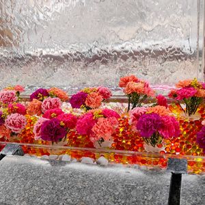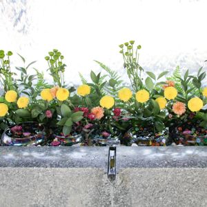 おはようございます😊 やっと酷い雨も一段落です 雨の合間にベゴニアさん 涼しを感じる花手水、ビー玉が キラキラ