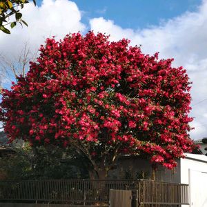 枝はあまり横には広がらず赤と白の小さな花を密集して枝につけ ひときわ目を引く存在となります☻ 嵐のメンバー5人が出演するCMロケ地として話題となった神社で 撮影記念植樹がありました✈️