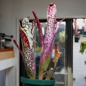 昨年9月にお迎えした株がキチンと冬を越してくれて、良い時期に動き出してくれました😊 子株がこの時期に出てくれると放っておいてもしっかりと育ってくれるのでワクワクしかありませんが、実は親株の成長の方が楽しみです! 良い季節が近づいてますが、冬を室内で過ごしたタンクブロメリアをここで浮かれて外に出して陽に当てすぎると、夏場に葉焼けしやすい株になることがあります😖 黄色っぽくなったり褐色になったりします。 じっくりと徐々に外管理に移行するほうが安心です😁