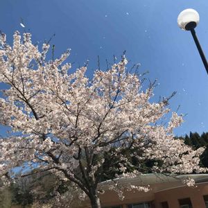 桜吹雪✨ 見切れてますがひこうき雲も!
