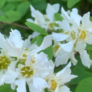 今日の散歩道🚶♀️🚶♀️栂緑道 「リキュウバイ」利休梅 純白の花、清楚な雰囲気です