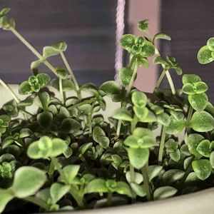 貝割れ大根ではないですよ。 光が欲しくて明るい方を向きます。 意地悪して鉢の向きを変えると、やはり明るい方へと動きます。 ずっと部屋の中でぬくぬくしているので、残念ながら可愛いピンクの縁取りができません。