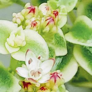おはようございます😃 晴れ☀️ました❗️🤗 フリージア属 ⭐️フリージア Freesia refracta❗️ 4色揃い咲き❣️🥰 クラッスラ属 ⭐️リトルミッシー(78) Crassule pellucida ssp.marginalis variegata❗️ 白い小さな花、春もっともっと増える❓🙄 センペルビブムちゃんを覆い隠してます❗️😅 カランコエ属 ⭐️福兎耳(318) Kalanchoe eriophylla❗️ 兎🐇ちゃんシリーズでこの子だけ "tomentosa"じゃない❗️😅 可愛い💕花が沢山❣️🥰 グラプトペタルム属 ⭐️朧月(230) Graptopetalum paraguayense❗️ 花満開❗️🤗 オトンナ属 ⭐️ルビーネックレス(142) Othonna capensis "Rubby Necklace"❗️ 黄色の花🌼が絶えず咲き続けてます❗️🤗