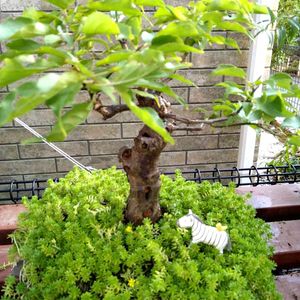 家にあるたった一つの盆栽? 苔の代わりに乗せたマンネングサ! 凄い繁殖力👀💦 花が咲く頃💓までには戻さないとです😅