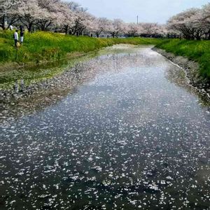 🌸さくら🌸🌸 朝倉市筑前町 H.30.4.1 撮影 ① 清流草場川の桜並木 強風で桜吹雪 一瞬で川が桜の花びらで幻想的になりました