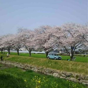 🌸さくら🌸🌸 朝倉市筑前町 H.30.4.1 撮影 ③ モデルさんの写真撮影があってました 桜も菜の花も緑もモデルさんも車もみんな綺麗でした