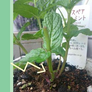 🌿ハーブ生活10日目🌿 切ったミントの茎の下の方から小さい芽が出てきた!!! これが植物の生命力…… しゅごい…!