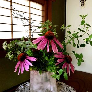 お庭で育てた四季折々のお花を生けて楽しむ暮らしにずっと憧れていました。 少しずつ少しずつ... ✿︎˘︶˘✿︎ ).。.:* ♬︎*゜