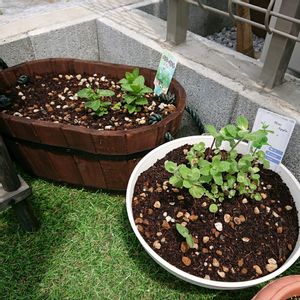 本葉がでてきたカモミールと カット苗のミントを植え付け🌿